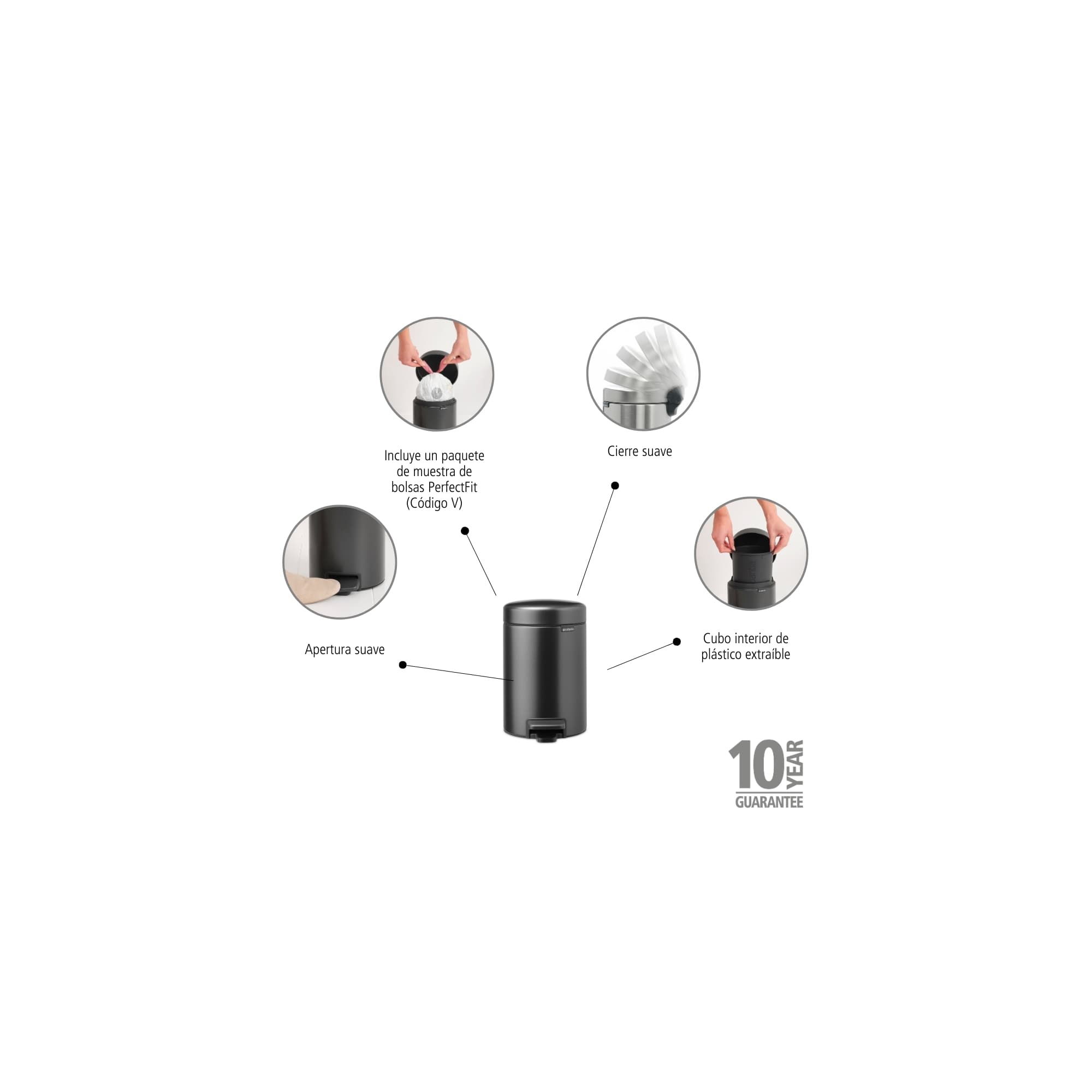 AutorizētiesPiešķiriet telpai jaunu stilu stilu ar jauko Brabantia Pedal Bin NewIcon 3 litru atkritumu tvertni. Kvalitatīvs metālisks dizains ar atkritumu smaku necaurlaidīgu un viegli aizveramu vāku. Un, protams, šī īpaši mazā NewIcon pedāļa tvertne ir higiēniska, viegli atverama un arī tīra. Lieliski piemērots jūsu vannas istabai, tualetei vai jebkurai citai telpai, kurā var izmantot lielisku mazu atkritumu tvertni.