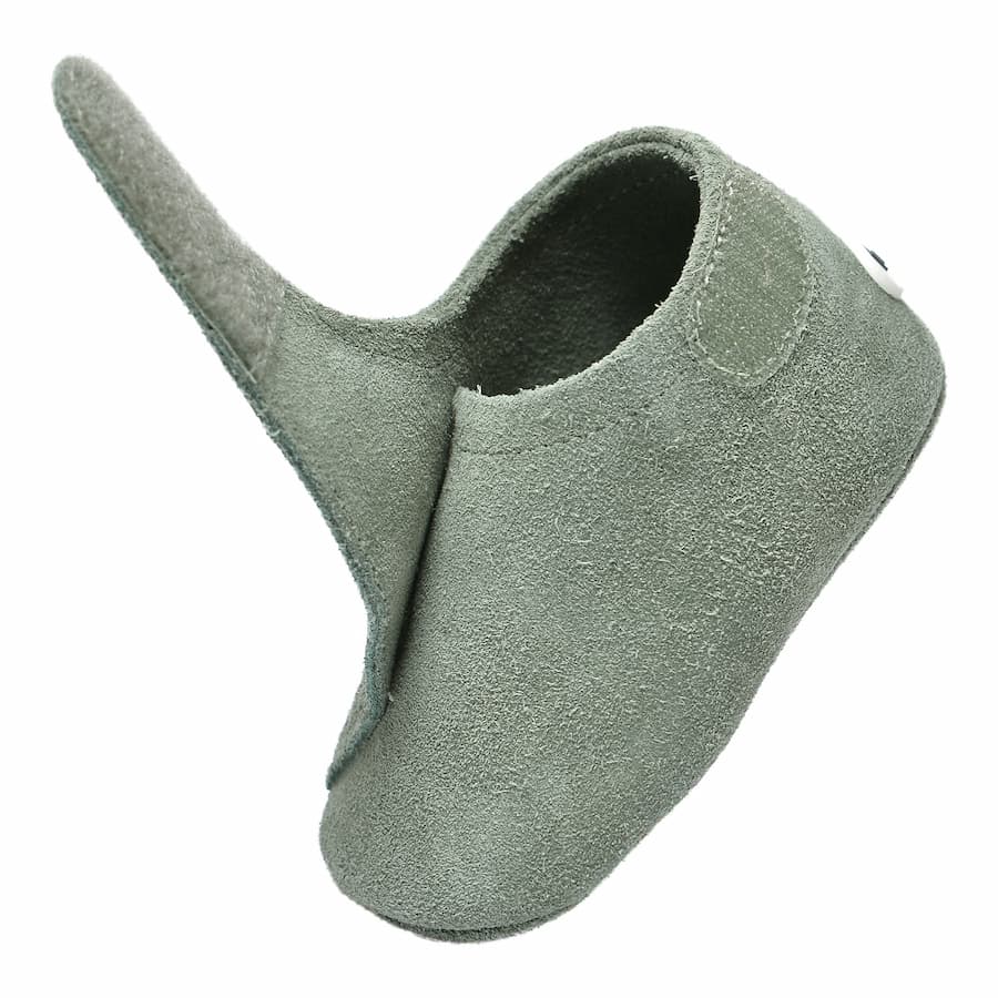 Pret slīdes gumijas zole sniedz drošu saķeri ar grīdu, kad tiek sperti pirmie soļi. Zābaciņi ir ļoti ērti uzvelkami un nekrīt nost, pateicoties regulējamai siksniņai ap potīti. Izgatavoti no netoksiskas dabīgas ādas, kas ļauj mazuļa pēdām elpot.
