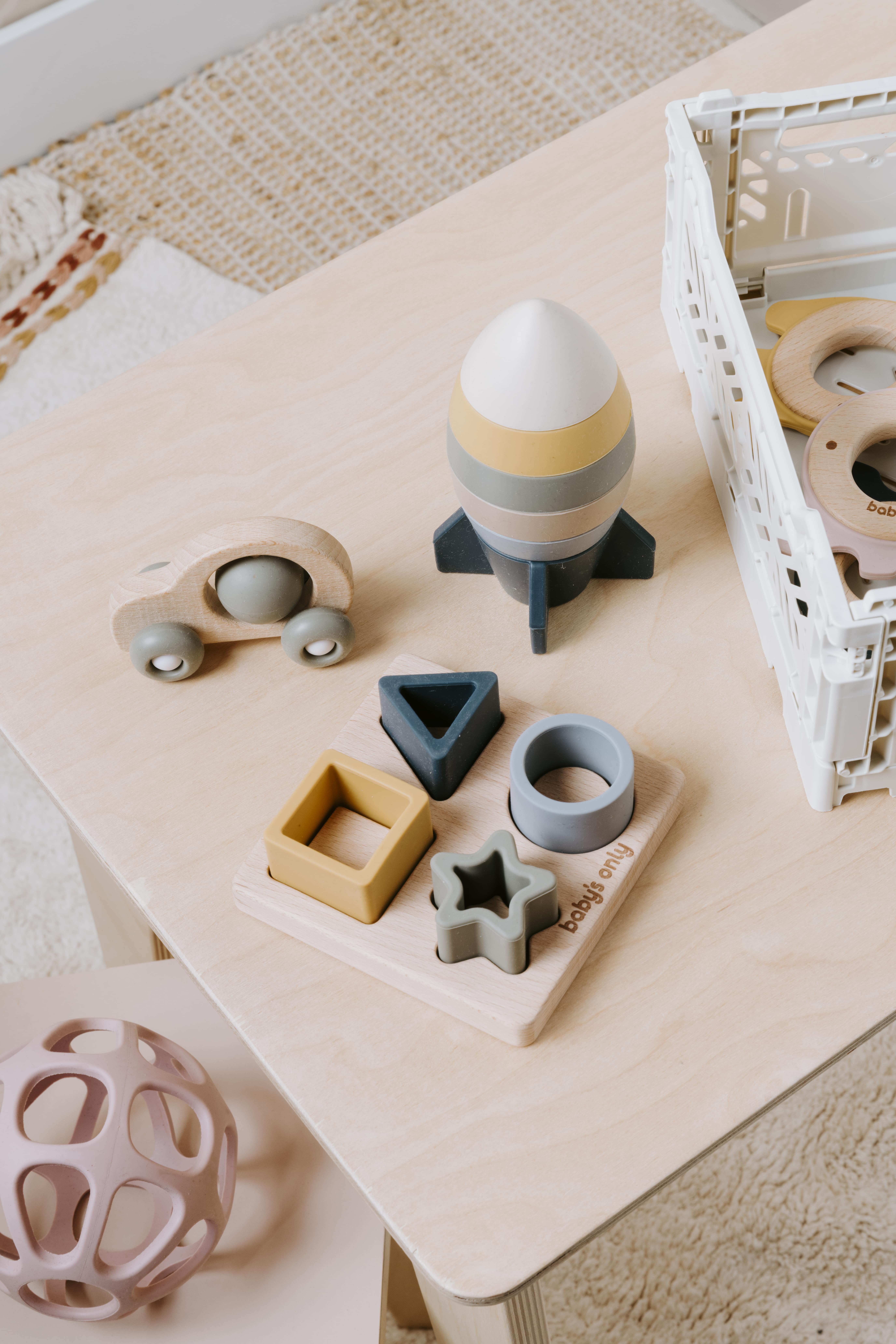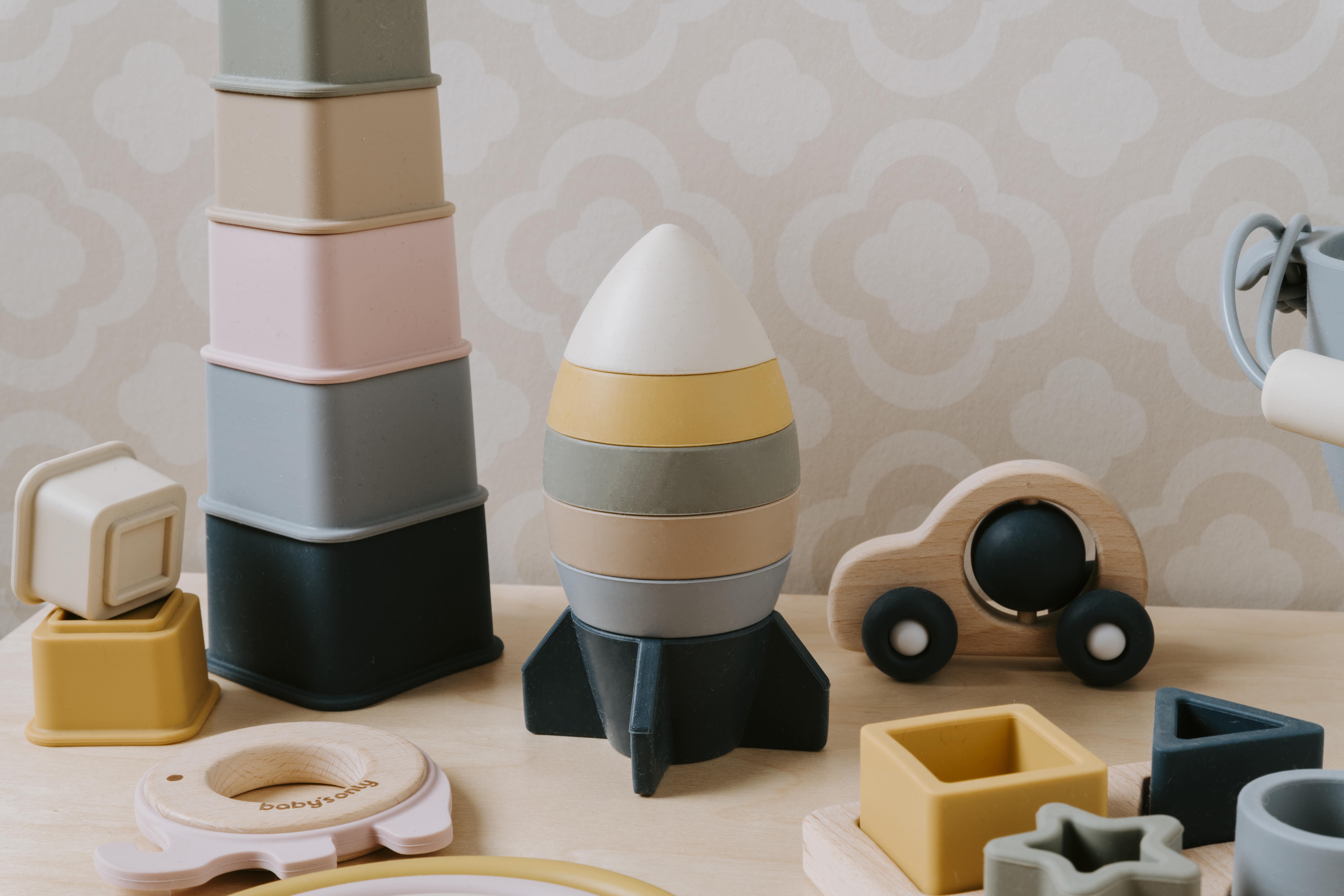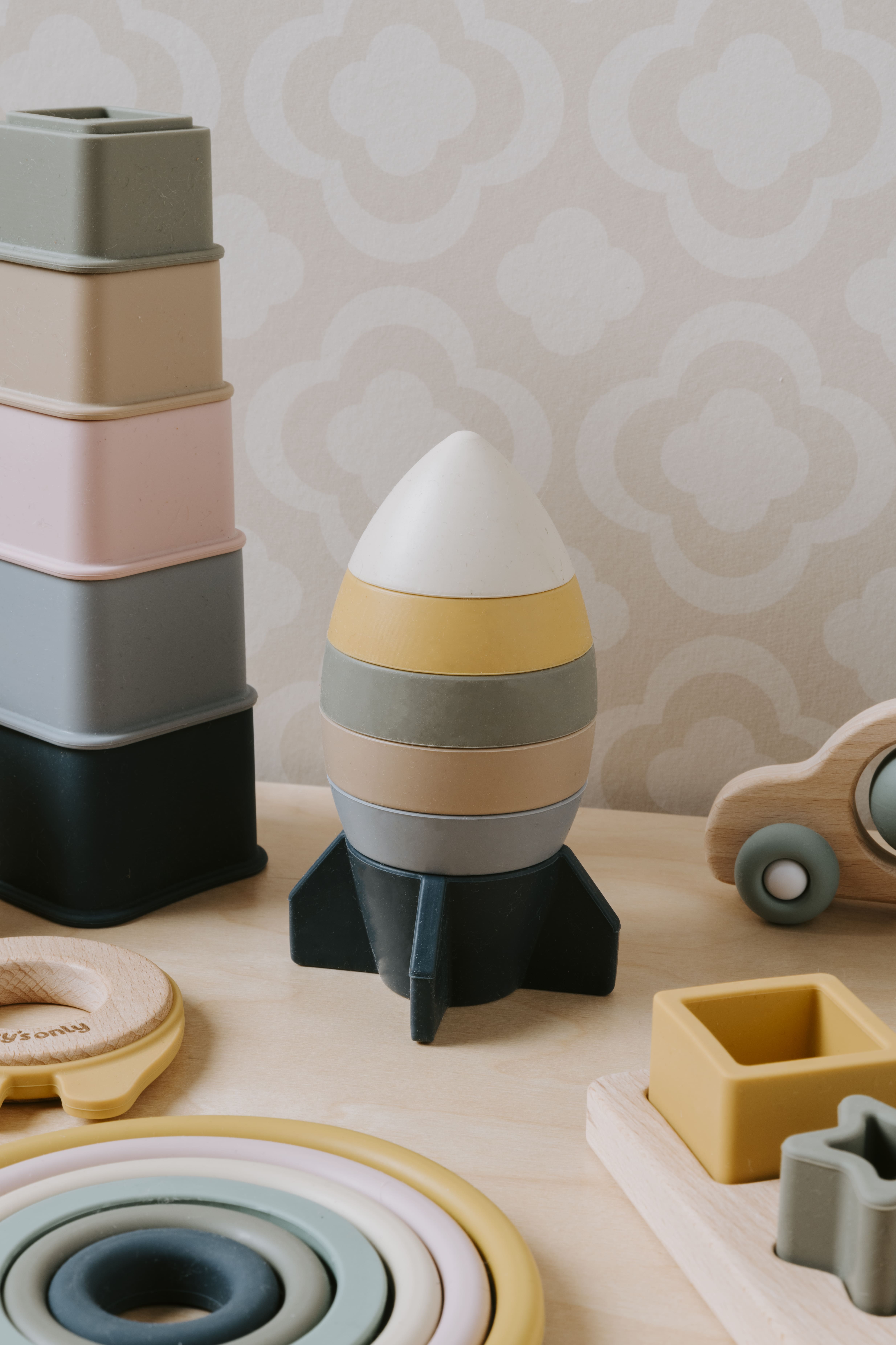 Veidojiet krāsainu raķetes torni no skaistiem silikona klucīšiem kopā ar savu mazuli. Jūsu mazulim būs ne tikai interesanti skatīties uz Baby's only krāsaino silikona raķetes torni, bet arī klucīšu likšana veicinās mazuļa organizēšanas un motorikas prasmju attīstību. Jautri un izglītojoši!