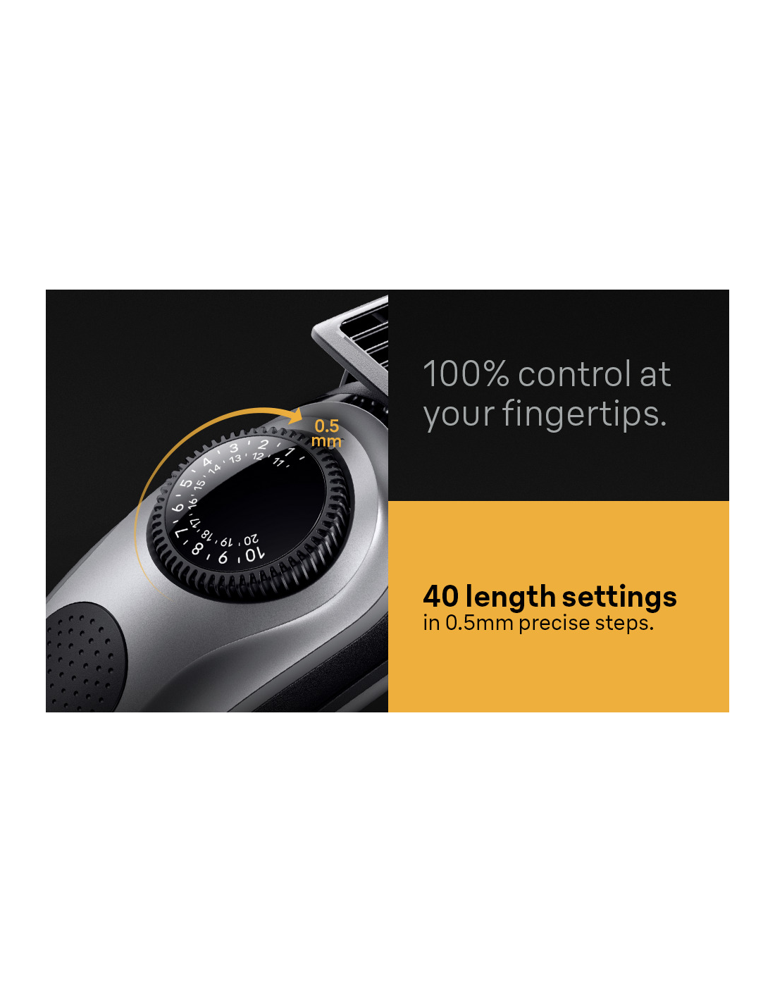 40 garuma iestatījumi precīzās 0,5 mm pakāpēs.