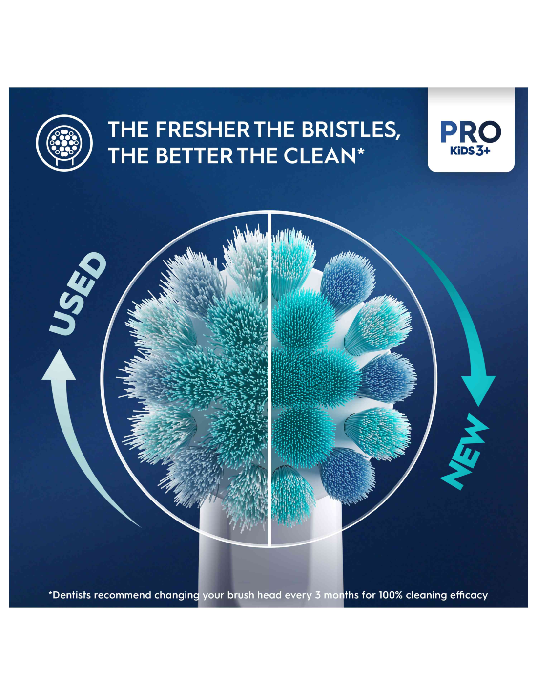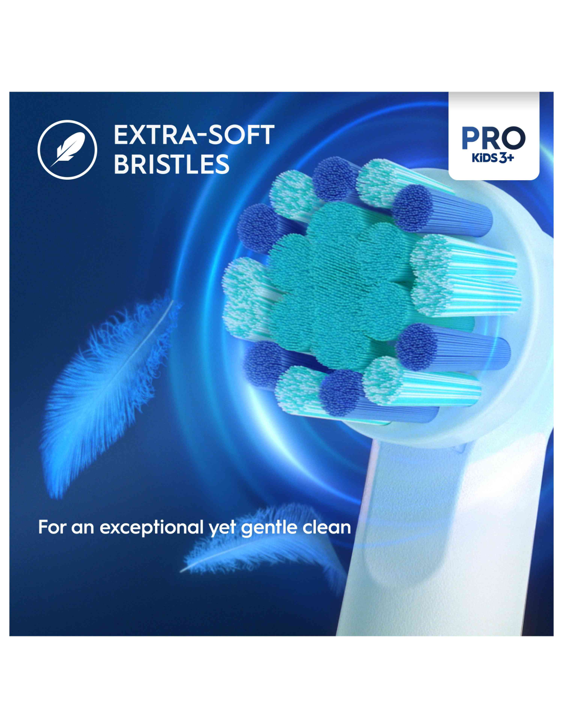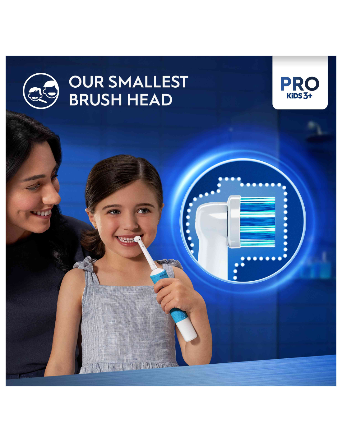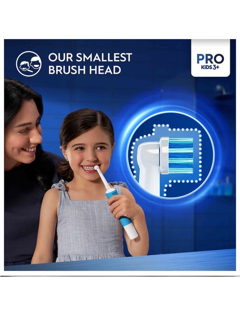 Mazāka, speciāli izstrādāta bērna mazajiem zobiem un mutei, birstes galviņa ar īpašiem sariem nodrošina ļoti saudzīgu tīrīšanu.