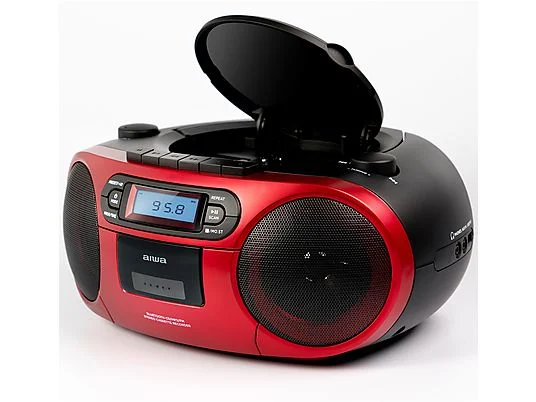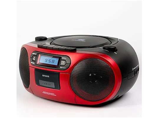 AIWA boombox sistēma ar kaseti, CD, bluetooth, AM/FM radio, sarkans