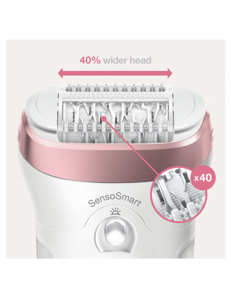 SensoSmart: Novērš epilatora galviņas piespiešanu pārāk spēcīgi ādai un spēj satvert vissīkākos matiņus