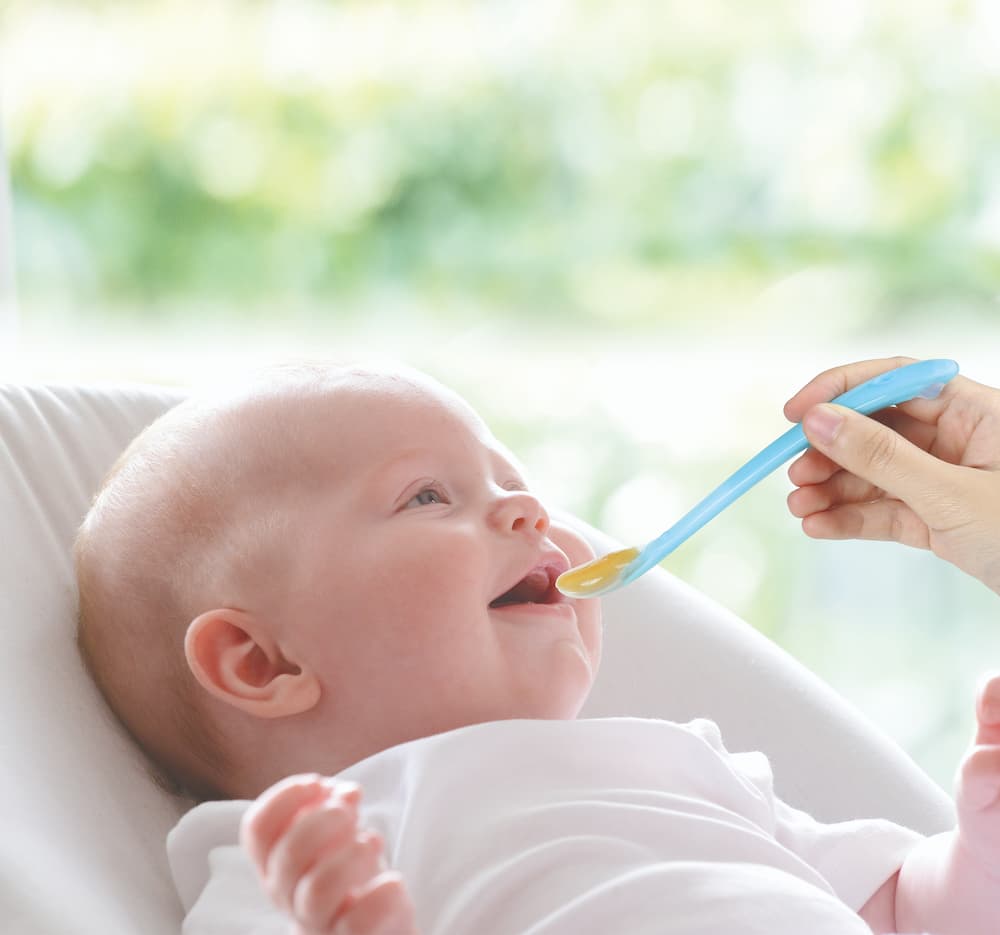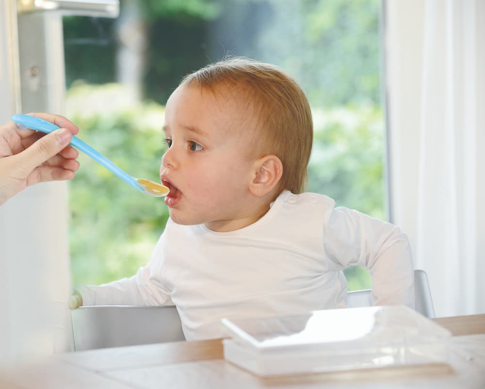 Karotes garais un ergonomiskais rokturis sniedz komfortu un ērtu lietošanu barojot mazuli. Elastīgais silikona karotes uzgalis ir maigs jutīgajām smaganām un zobiem. Pateicoties karotes garajam kātam ir ērti izņemt visu ēdienu no burciņas. Karote ir lieliski piemērota, lai mazulis mācītos ēst patstāvīgi. Krāsa violeta, komplektācijā divas barošanas karotes. Ieteicams bērniem no 4 mēnešu vecuma.