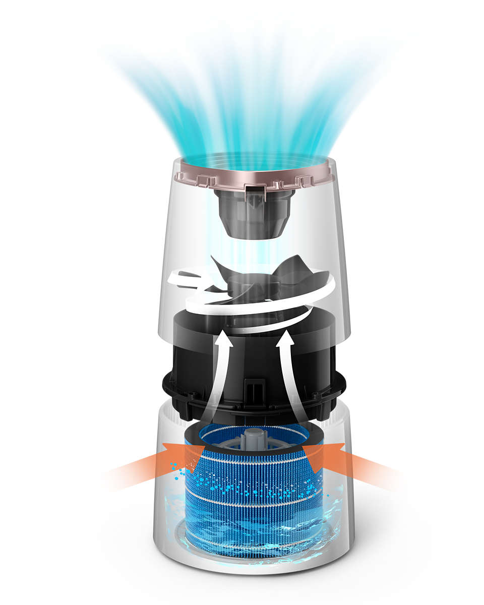 Gaisa mitrinātājs ar tā 360° konstrukciju vienmērīgi izplata mitrināto gaisu visā telpā, novēršot mitruma plankumu rašanos uz grīdas un virsmām. NanoCloud tehnoloģija arī samazina risku, ka gaisā izplatīsies minerālvielas, tādējādi novēršot baltu traipu rašanos uz mēbelēm un citām virsmām.