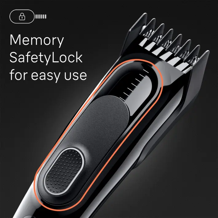 Memory SafetyLock atceras un bloķē pēdējo izmantoto iestatījumu, lai atvieglotu matu apgriešanu