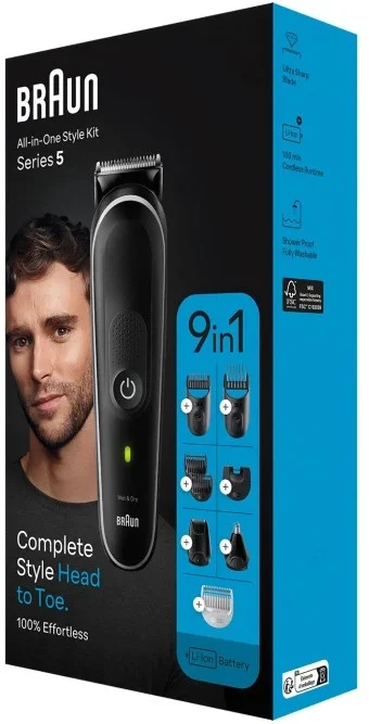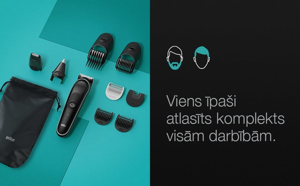 Braun 9 in 1 Bārdas un sejas kopšanas komplekts. izstrādāti rīki bārdas, ausu un deguna apgriešanai un matu griešanai mājās.