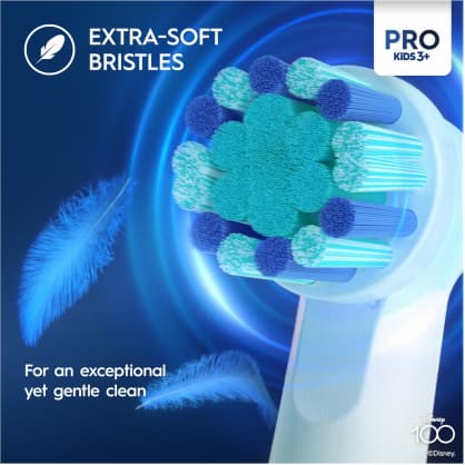Oral-B Pro Kids elektriskā zobu birste, zobārstu ieteikums bērniem no 3 gadu vecuma, nodrošina saudzīgu, efektīvu tīrīšanu. Ar 2 zobu tīrīšanas režīmiem, tostarp unikālu, bērniem draudzīgu režīmu jutīgiem zobiem, šī zobu birste saudzīgi tīra bērnu zobus. Tā notīra vairāk aplikuma nekā standarta manuālā zobu birste. Iekļautas četras tematiskās uzlīmes, ko var izmantot, lai pielāgotu rokturi.