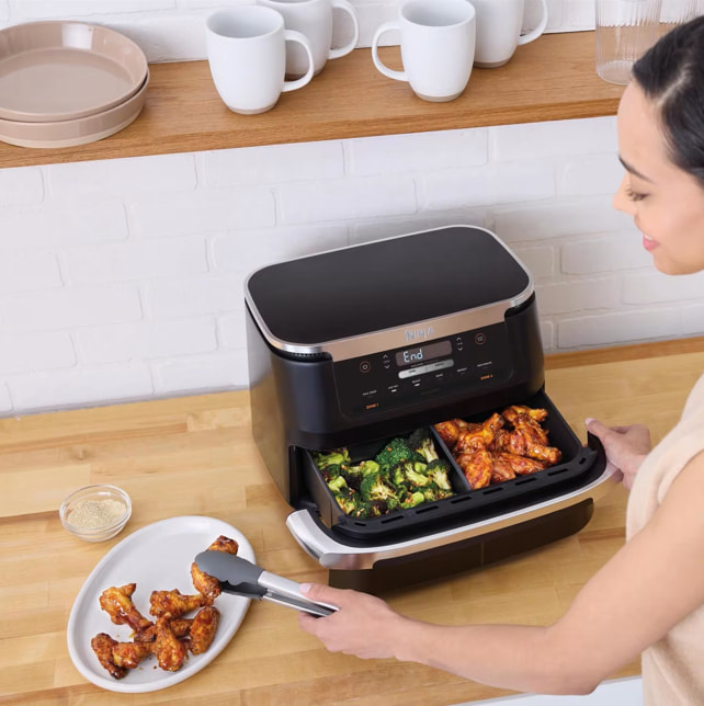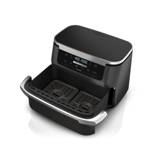 Izmantojiet dažādas gaisa fritētavas funkcijas katrā neatkarīgajā 3,3 litru gatavošanas zonā. Gatavojiet pamatēdienus un piedevas vienā ierīcē.