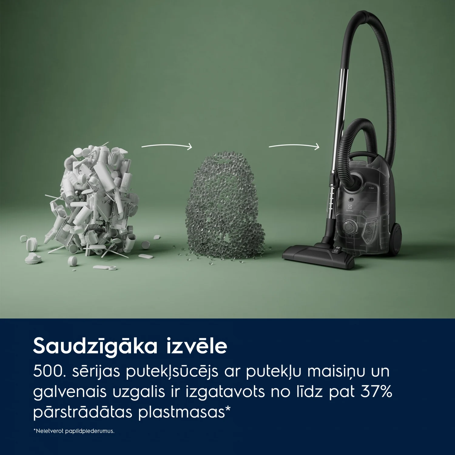 Putekļsūcējs 300 un galvenais uzgalis ir izgatavots no līdz pat 31 % pārstrādātas plastmasas.