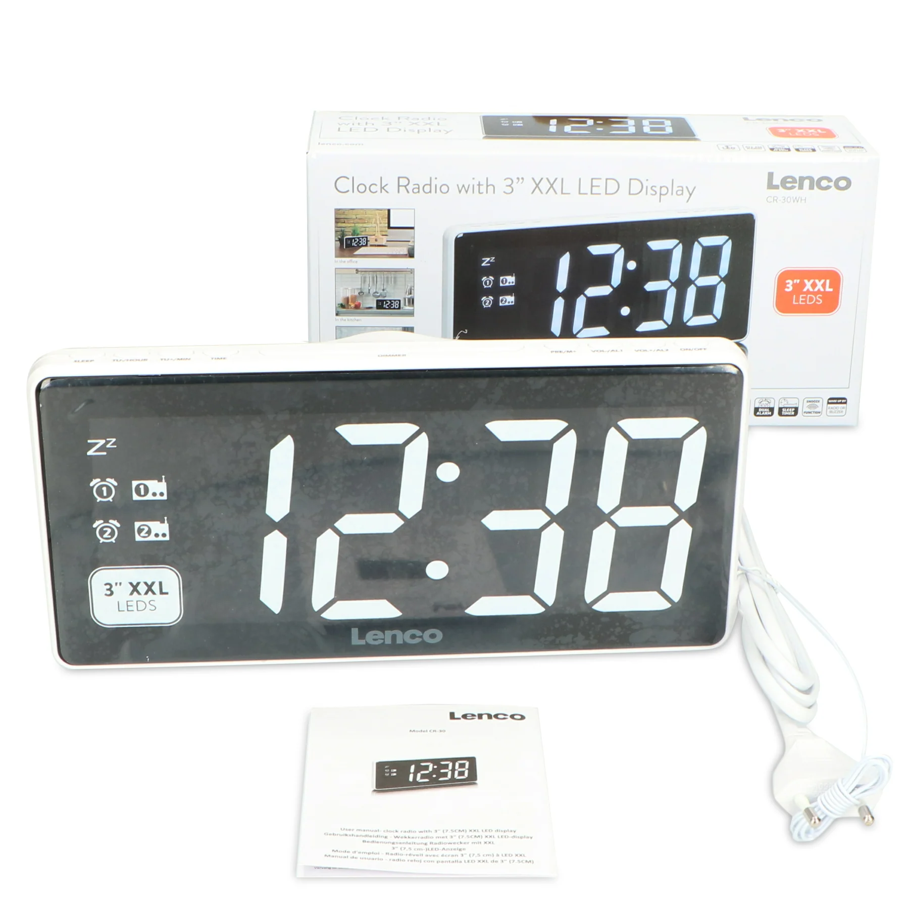 Lenco radio pulkstenis, ar lielu displeju, balts