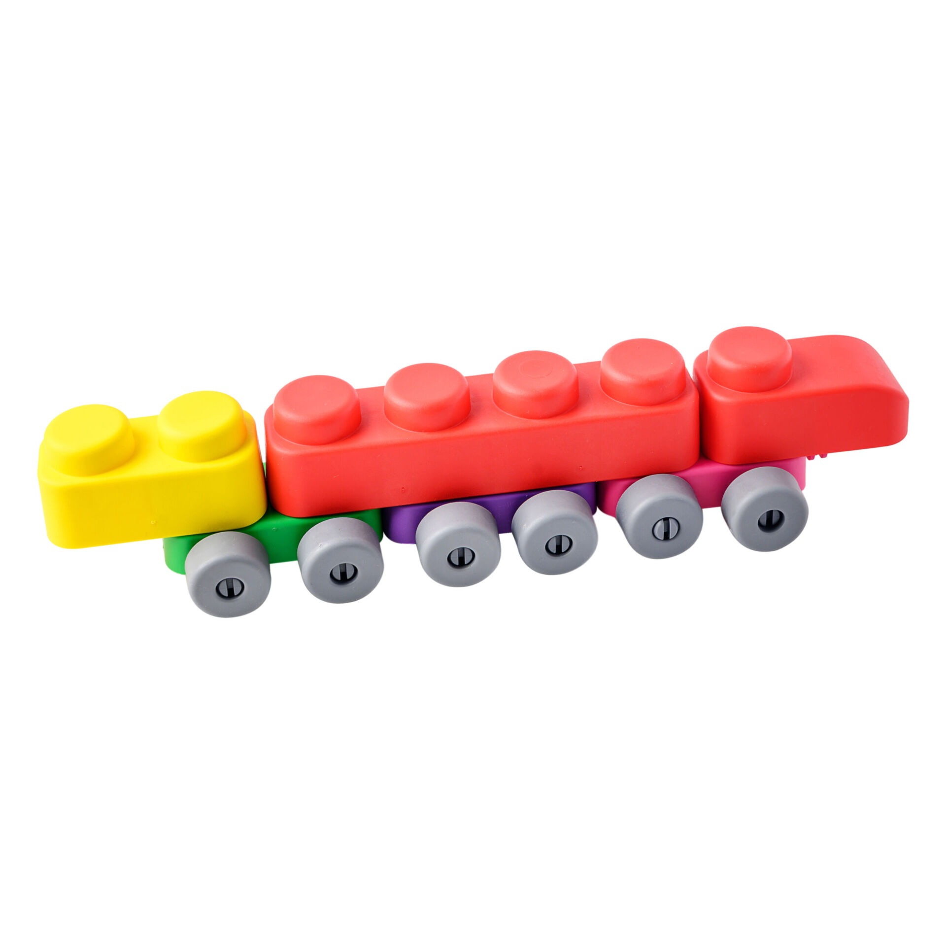 Gerardo's Toys mīksto klucīšu komplekts ar riepām, 14 gab. (10 gab. + 4 riepu detaļas)