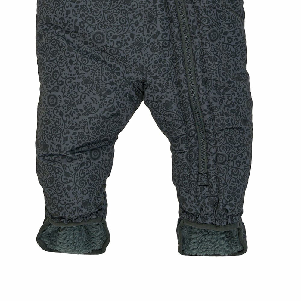 Kombinezona iekšpusē ir iešūts mīksts flīsa materiāls, lai bērnam nodrošinātu maksimālu siltumu un komforta sajūtu. Elastīgā jostasvieta nodrošina ciešu un drošu piegulšanu pie bērna ķermena, lai saglabātu siltumu.