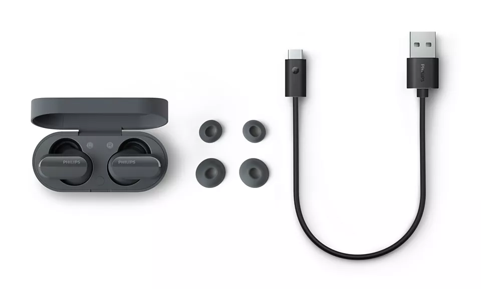 PHILIPS in-ear true bezvadu austiņas ar portatīvo uzlādes ietvaru, melnas