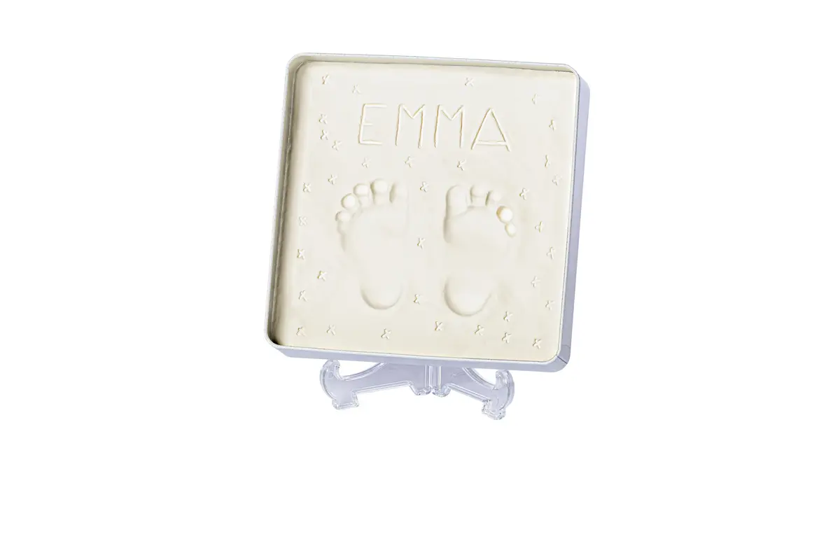 Tiny Creations Magic Box rāmis ar vāku un statīvu piedāvā vietu mazuļa roku vai kāju nospiedumam. Izveidojiet skaistu apdari, kas arī palīdzēs saglabāt atmiņas par skaisto periodu pēc bērna piedzimšanas. Lietošana saskaņā ar pievienotajām instrukcijām ir vienkārša, ātra un bez nekārtības. Komplektā ietilpst rāmis un viss, kas nepieciešams, lai atstātu iespaidu. Produkts ir dermatoloģiski pārbaudīts un ir 100% drošs jūsu bērnam.