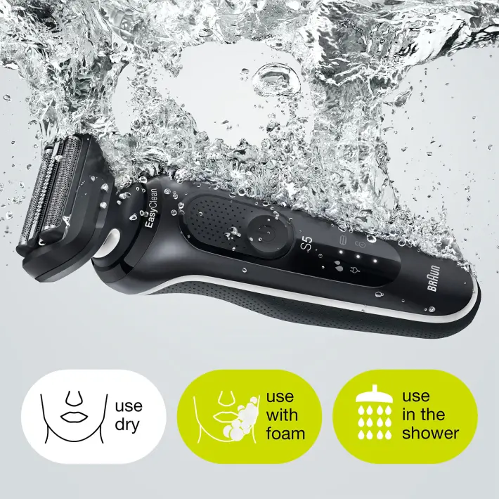100% ūdensnecaurlaidīgs elektriskais skuveklis mitrai un sausai lietošanai.