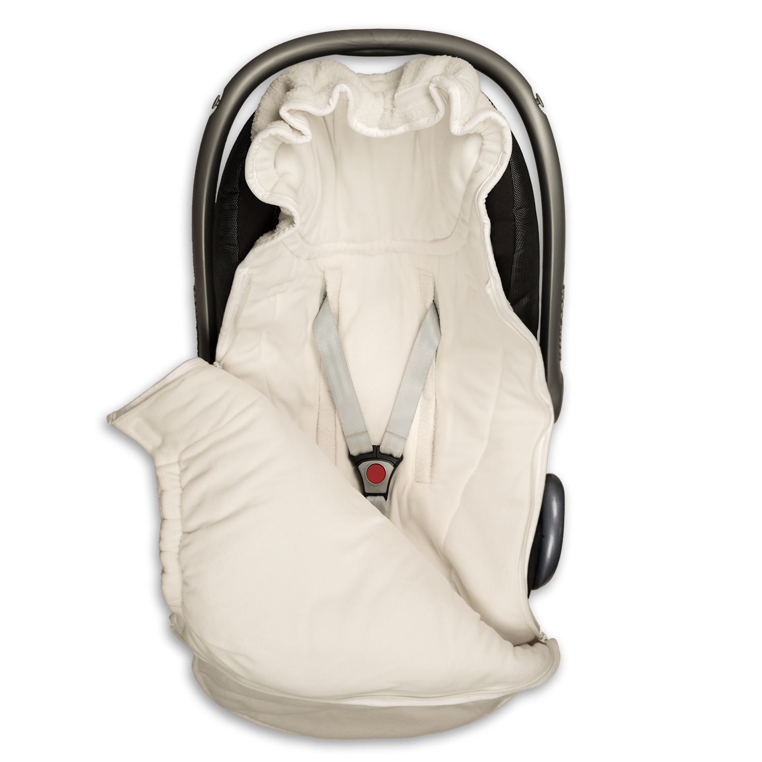 Mini guļammaiss der visiem bērnu autokrēsliņiem, bērnu ratiņiem un sporta ratiņiem, pateicoties 3 vai 5 punktu jostu iestrādātajām atverēm.