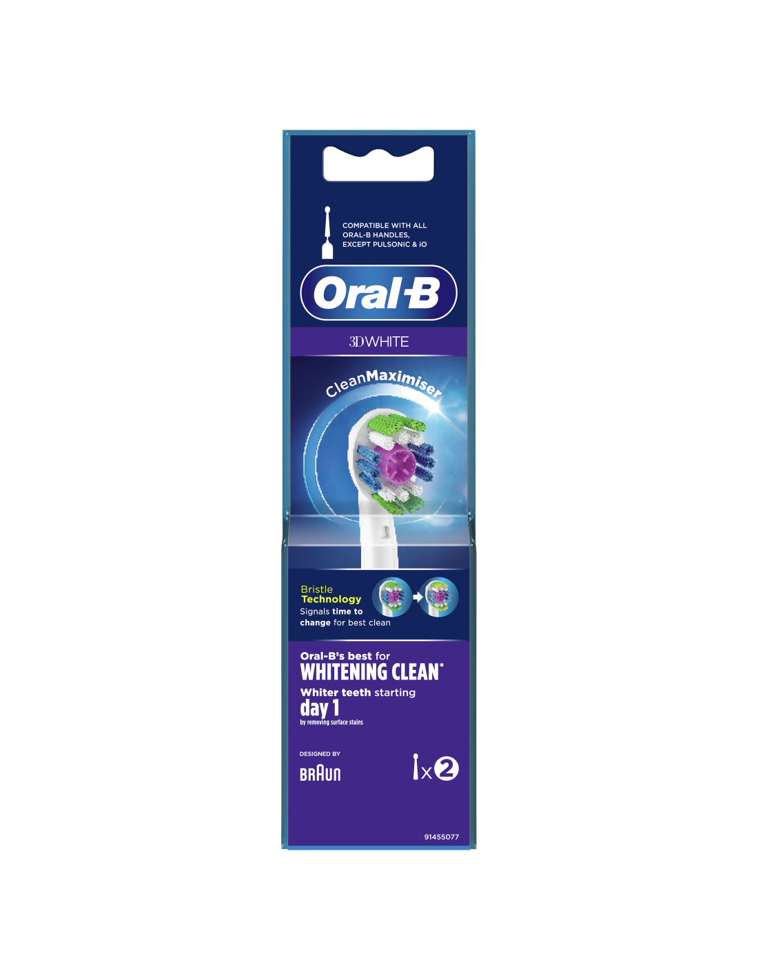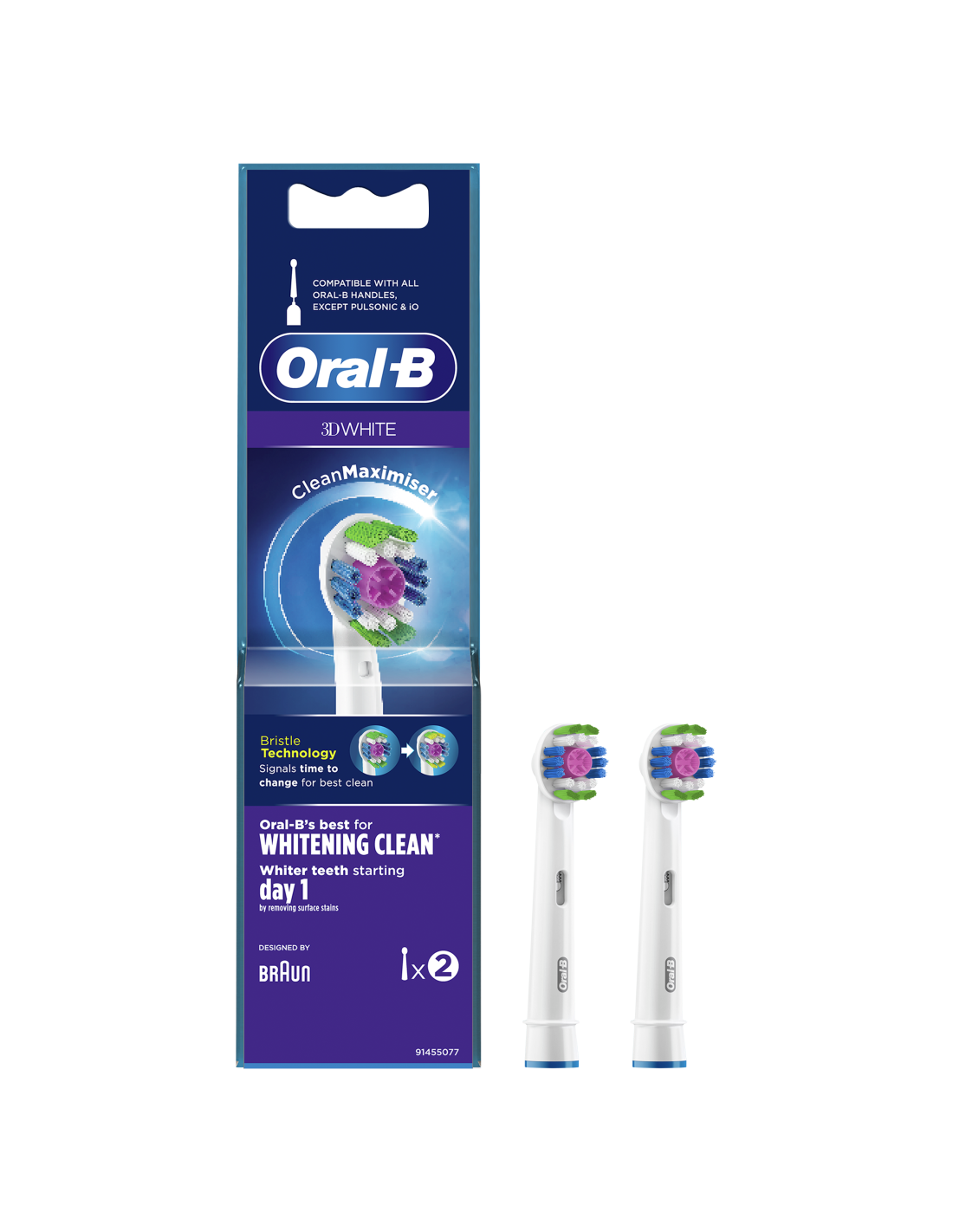 3D White birstes galviņai ir speciāla gumijas iedobe, kurā uzklāj zobu pastu, lai efektīvi likvidētu pigmentu un traipus. Piemēroti Oral-B Vitality, PRO, Smart un Genius zobu birstēm.