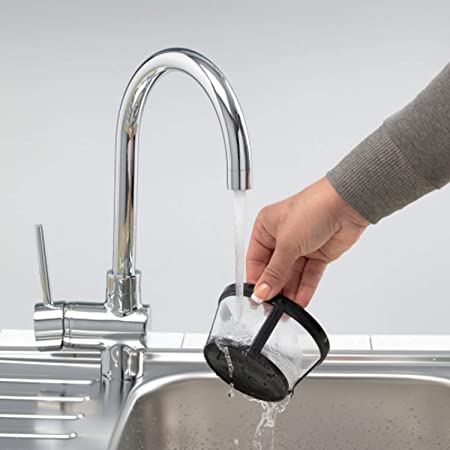 Kafijas filtrs ir noņemams un viegli uzpildāms, bet arī viegli mazgājams tieši zem ūdens, tāpēc jūsu kafijas automāts ir gatavs nākamās kafijas pagatavošanai.