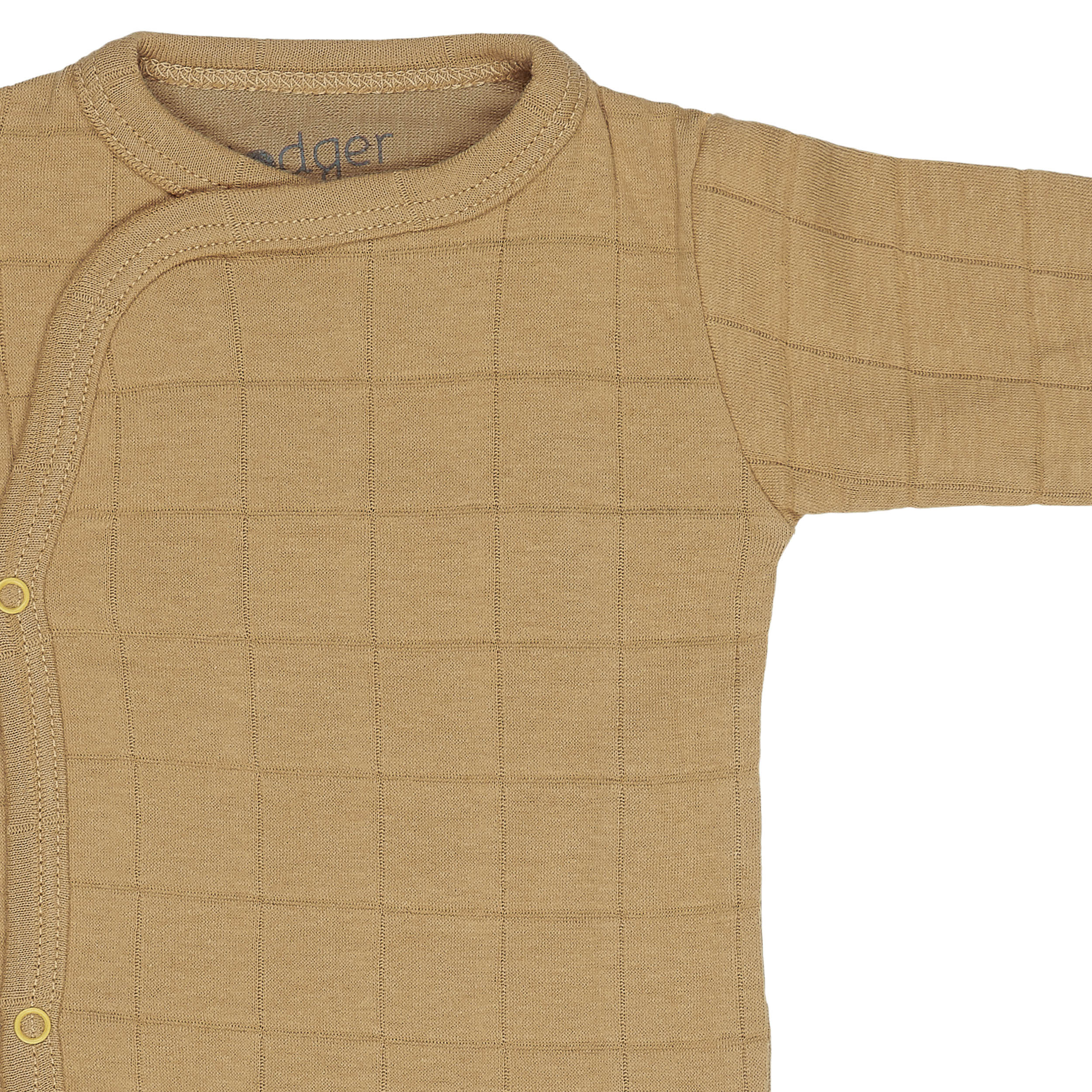 Lodger Romper Solid kokvilnas bodijs ar garām piedurknēm, Honey, 68 cm