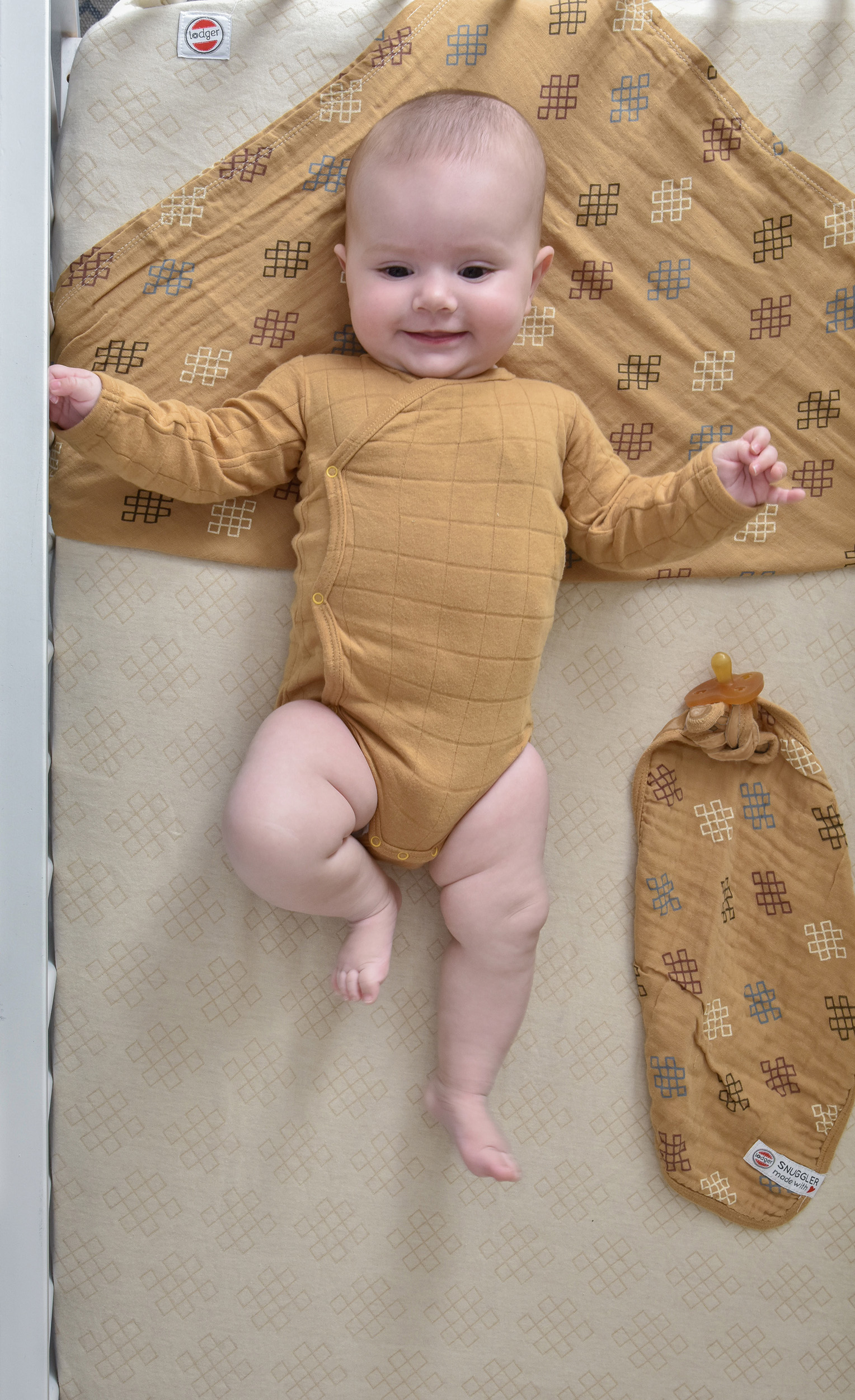 Apģērbt mazuli varētu būt izaicinājums, īpaši, ja runa ir par visjaunākajiem jaundzimušajiem. Mūsu bodiji ar pārliekamo dizainu un spiedpogu aizdari ir viegli lietojami. Jūs varat viegli apģērbt savu mazuli, neko nepārvelkot pār viņa galvu. Mēs arī pievienojām īpašas ieloces lejas daļā, lai radītu vairāk vietas autiņbiksītēm un ieloces, kas nodrošina brīvas kustības kājiņām. Bodijus ar garām piedurknēm kombinējiet ar mūsu vasaras guļammaisiem bez piedurknēm un radiet savu unikālu garderobi.
