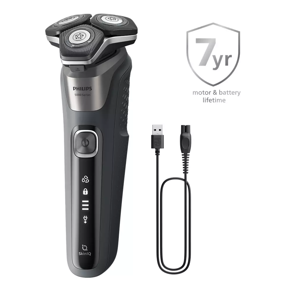 AutorizētiesPhilips Series 5000 skuveklis palīdz efektīvi noskūties, tagad ar katru kustību nogriežot vēl vairāk matiņu*. Ar uzlaboto SkinIQ tehnoloģiju aprīkotais skuveklis konstatē matiņu biezumu un tam pielāgojas, ādai sniedzot vairāk komforta.
