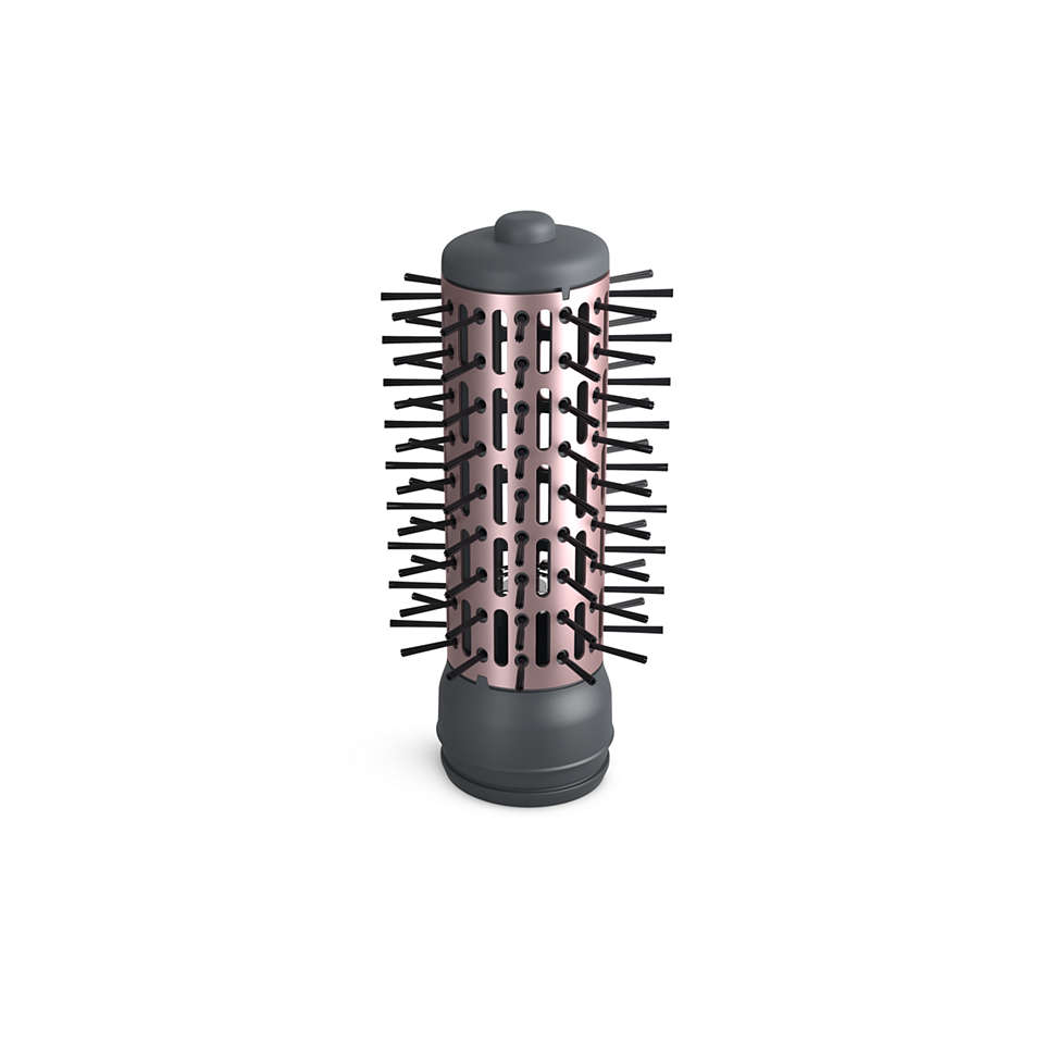 AutorizētiesVolumebrush ļauj izveidot dažādus stilus, vienlaikus saglabājot matus gludus un spīdīgus. Trīs dažādu izmēru rotējošas dabisko saru sukas piešķir apjomu un ļauj izveidot dažāda stila frizūras, bet ar suku ar ievelkamiem sariem var izveidot skaistas lokas.