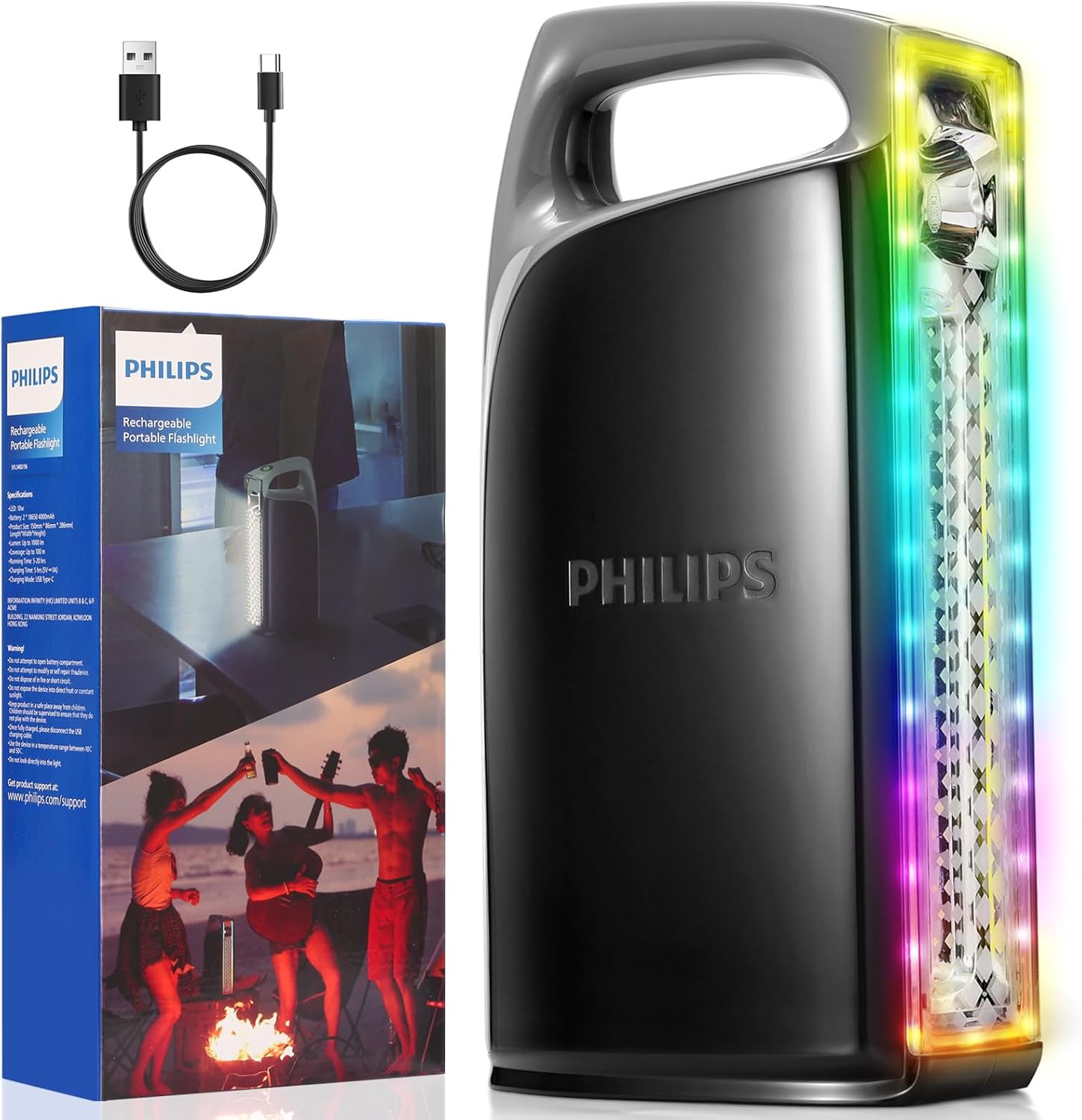 Trīs vienā dizains (lukturītis/kempinga lampa/RGB noskaņas apgaismojums). Lukturītim ir divi spilgtuma līmeņi (augsts/zems), kā arī stroboskopa un SOS ārkārtas signāla funkcijas, kas piemērotas dažādām situācijām, tostarp kempingam, aktivitātēm dabā un sadzīves ārkārtas gadījumiem.