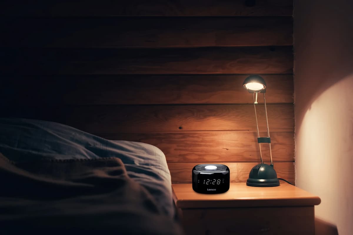 Lenco pulkstenim ir divkāršā modinātāja funkcija. Tas ir noderīgi, ja Jūs un vēl kāds vēlaties celties dažādos laikos. “Atlikt” poga nodrošina to, ka variet vēl nedaudz pasnaust pēc modinātāja signāla atcelšanas Jūs varat arī doties pie miera ar Lenco CR-12. Vienkārši iestatiet miega taimeri, un modinātājs automātiski izslēgsies iestatītajā laikā, tādējādi izvairoties no pēkšņas pamodināšanas nakts vidū ar radio. Lenco CR-12 ir ērta nakts gaisma un displejs ar spilgtuma regulēšanas funkciju.