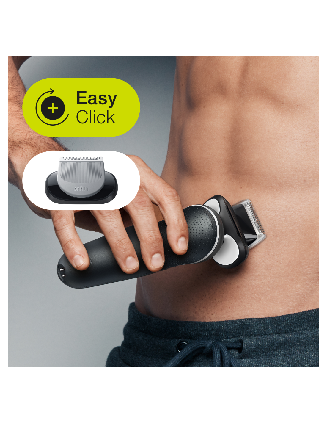 Papildiniet savu skuvekli ar komplektā esošo ķermeņa skūšanās uzgali un tam paredzētajiem 2 ķemmes uzgaļiem