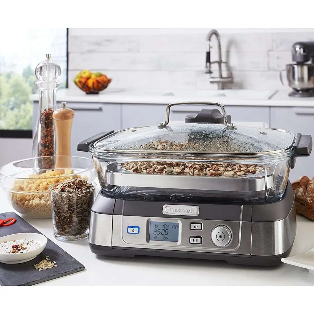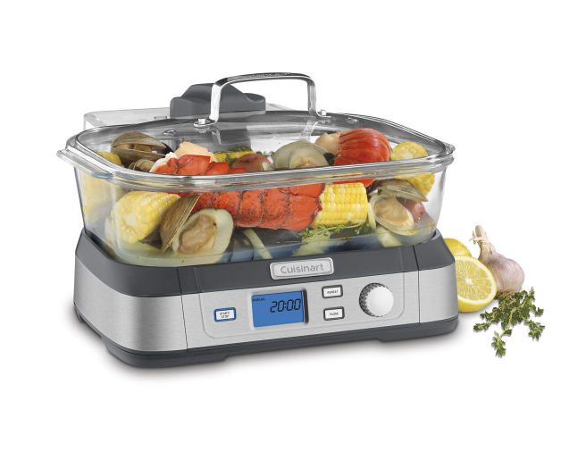 Cuisinart stikla tvaicētājam ir unikāls dizains, kas ģenerē spēcīgu tvaiku no ierīces augšpuses un ātri un vienmērīgi to izplata, lai iegūtu perfektus rezultātus. Lielā tvaicēšanas kamera ir pilnībā izgatavota no stikla, kas palīdz saglabāt sastāvdaļu garšu.
