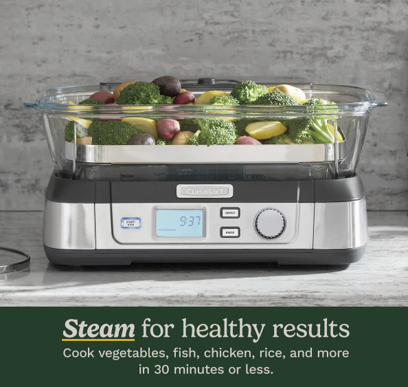 AutorizētiesAr profesionālo Cuisinart stikla tvaicētāju jūs varat ātri un vienkārši pagatavot perfektu gaļu, zivis vai dārzeņus.